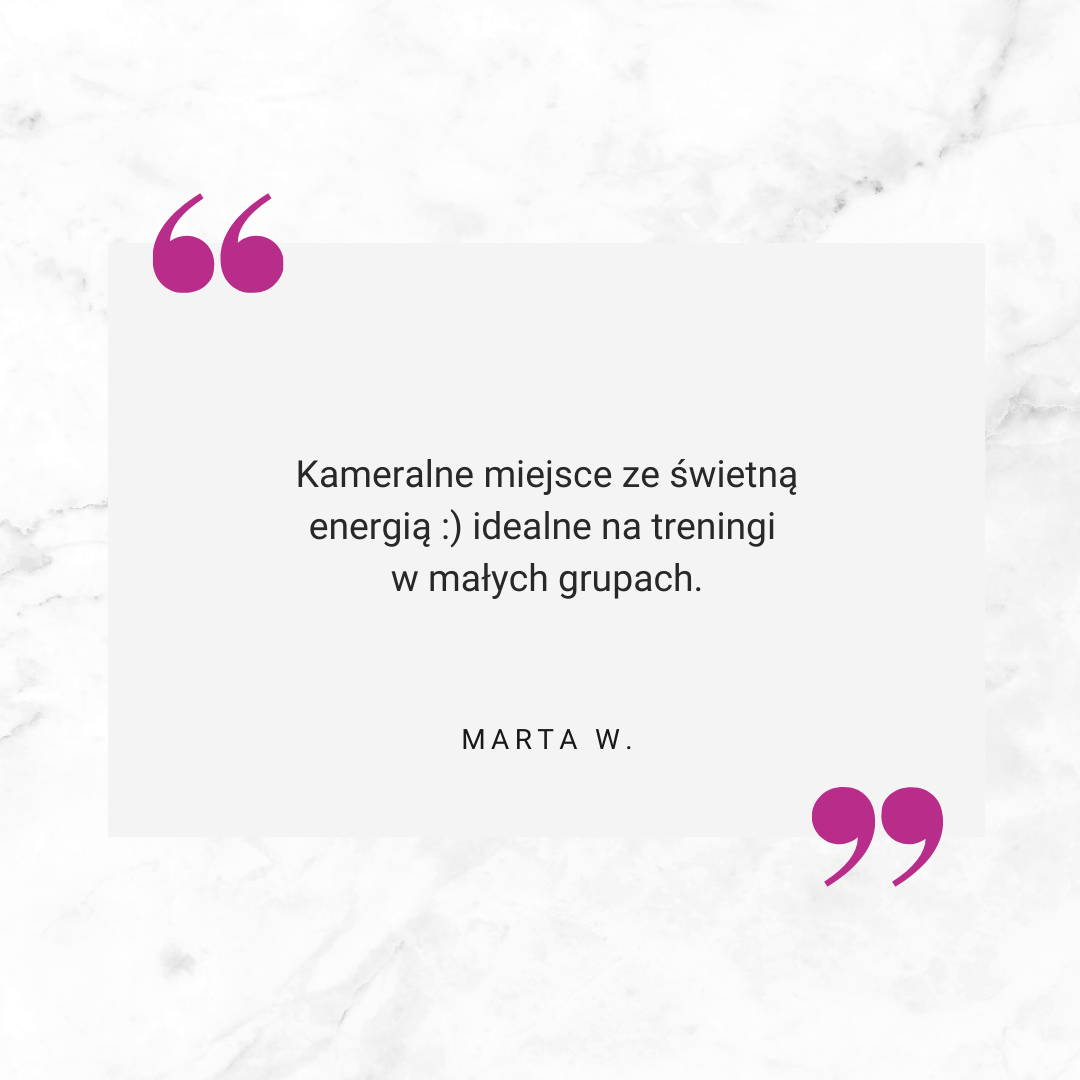 Bez tłumów: nasze studio jest kameralne, co oznacza, że zawsze możesz liczyć na spokojną atmosferę i brak tłumów. Dzięki temu każdy trening jest bardziej komfortowy i efektywny.